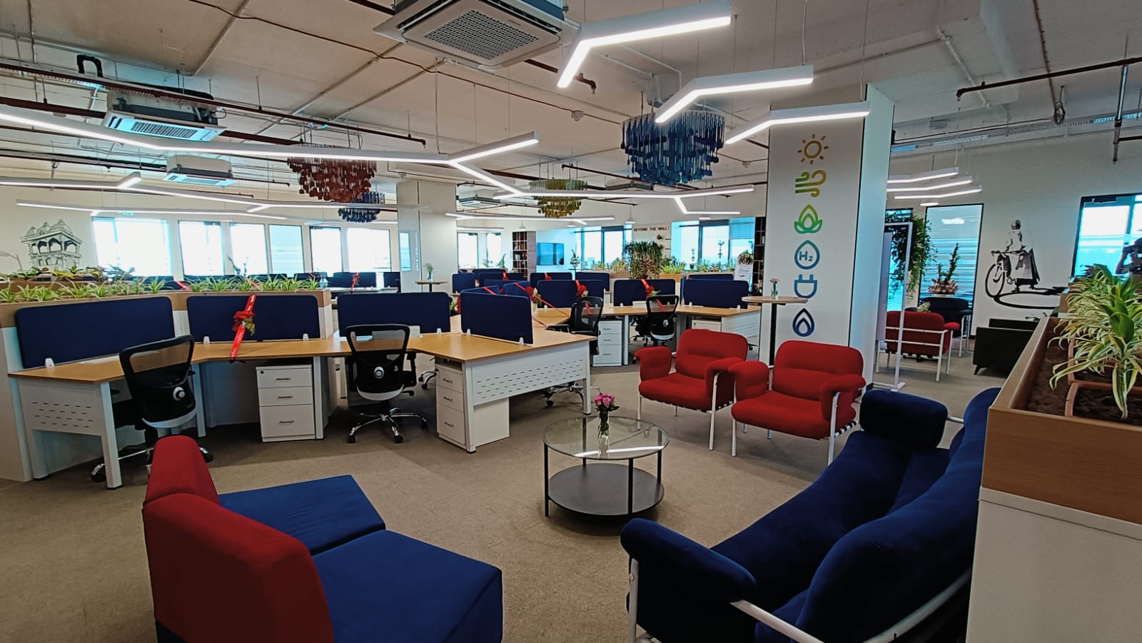 A modern workspace designed for IT Account Office along S.G. Highway, Ahmedabad. This turnkey project reflects a perfect fusion of functionality and style — featuring thoughtfully planned zones that enhance productivity, comfort, and collaboration. Clean aesthetics and smart detailing bring a contemporary edge to the overall work environment.