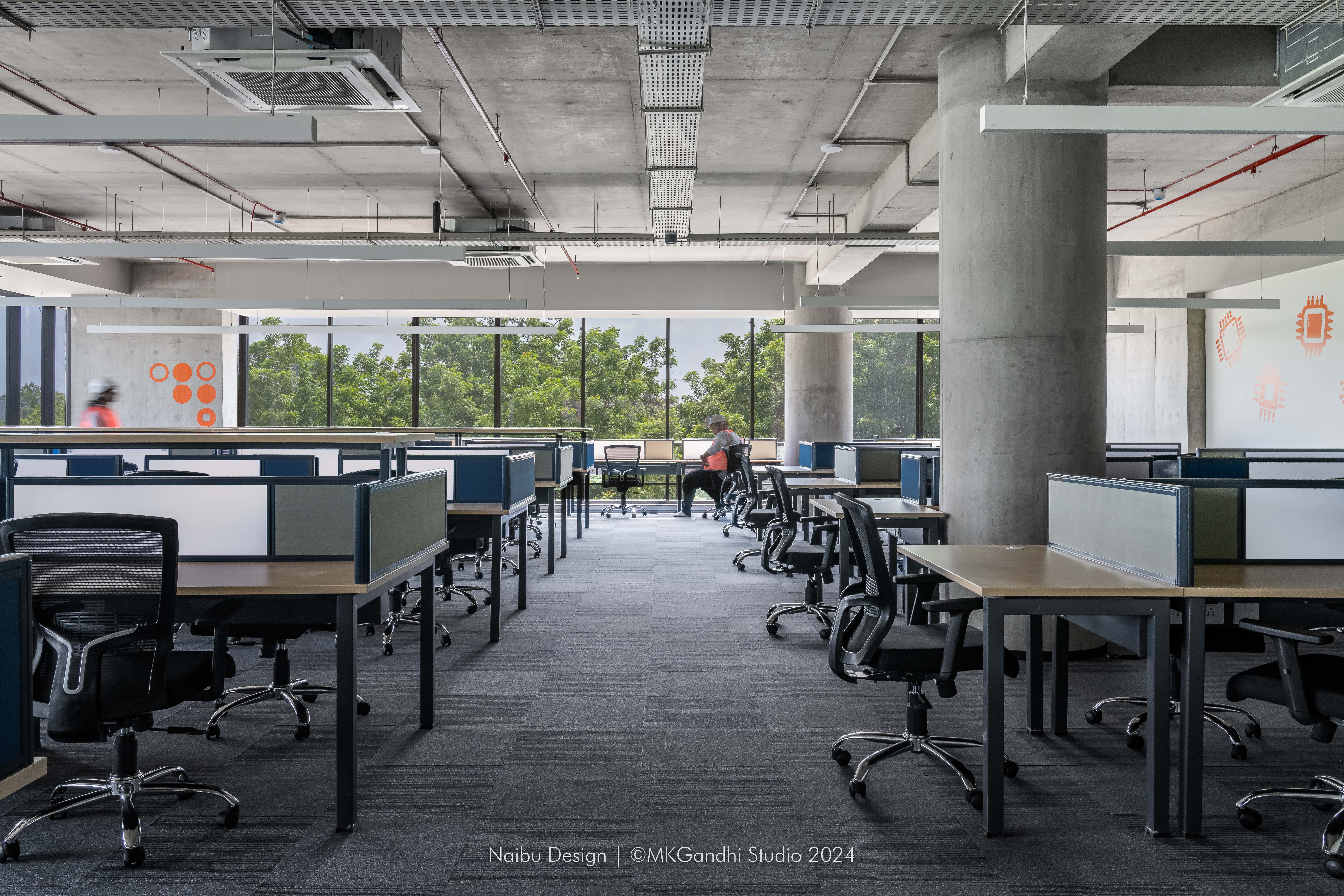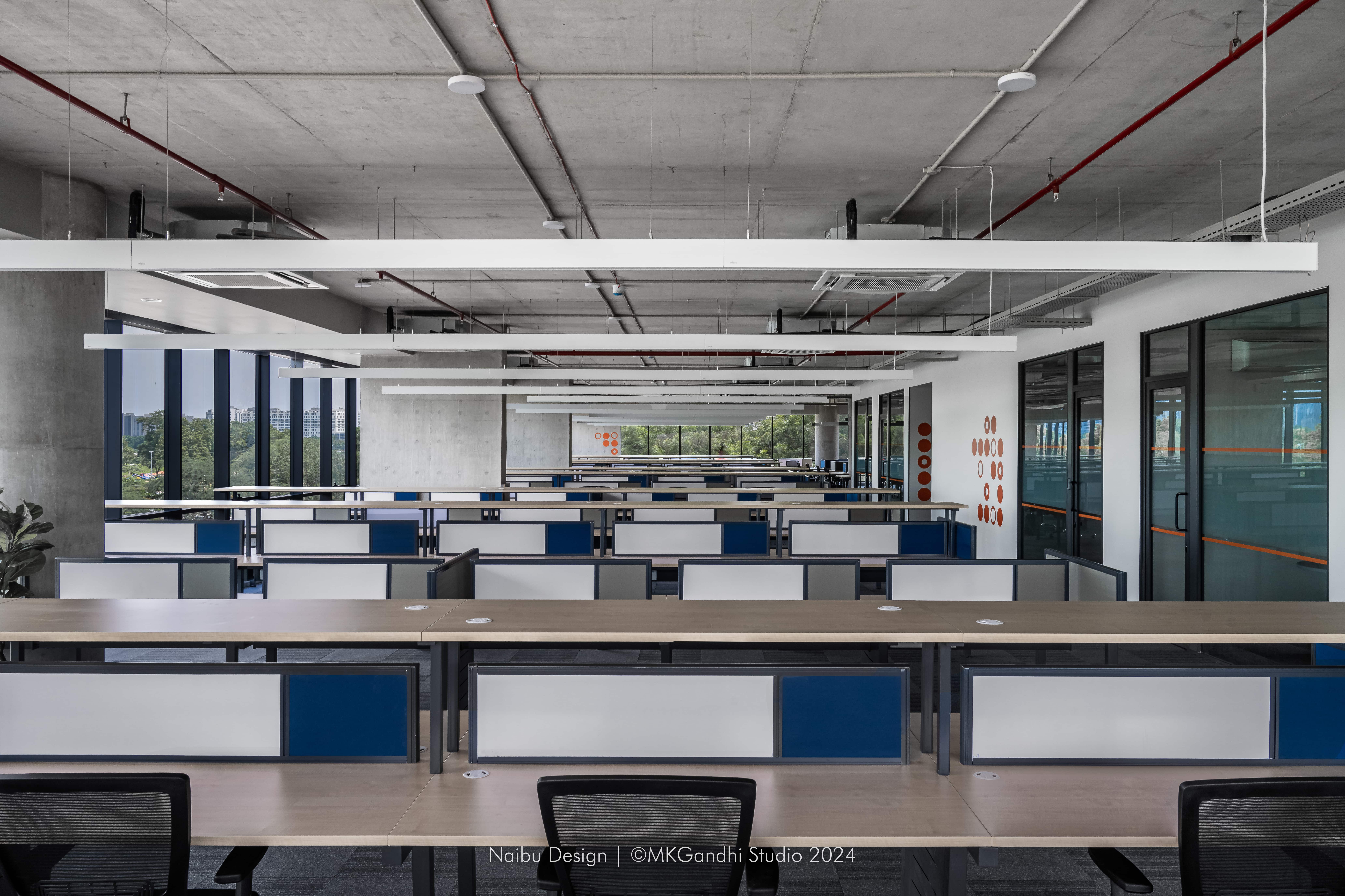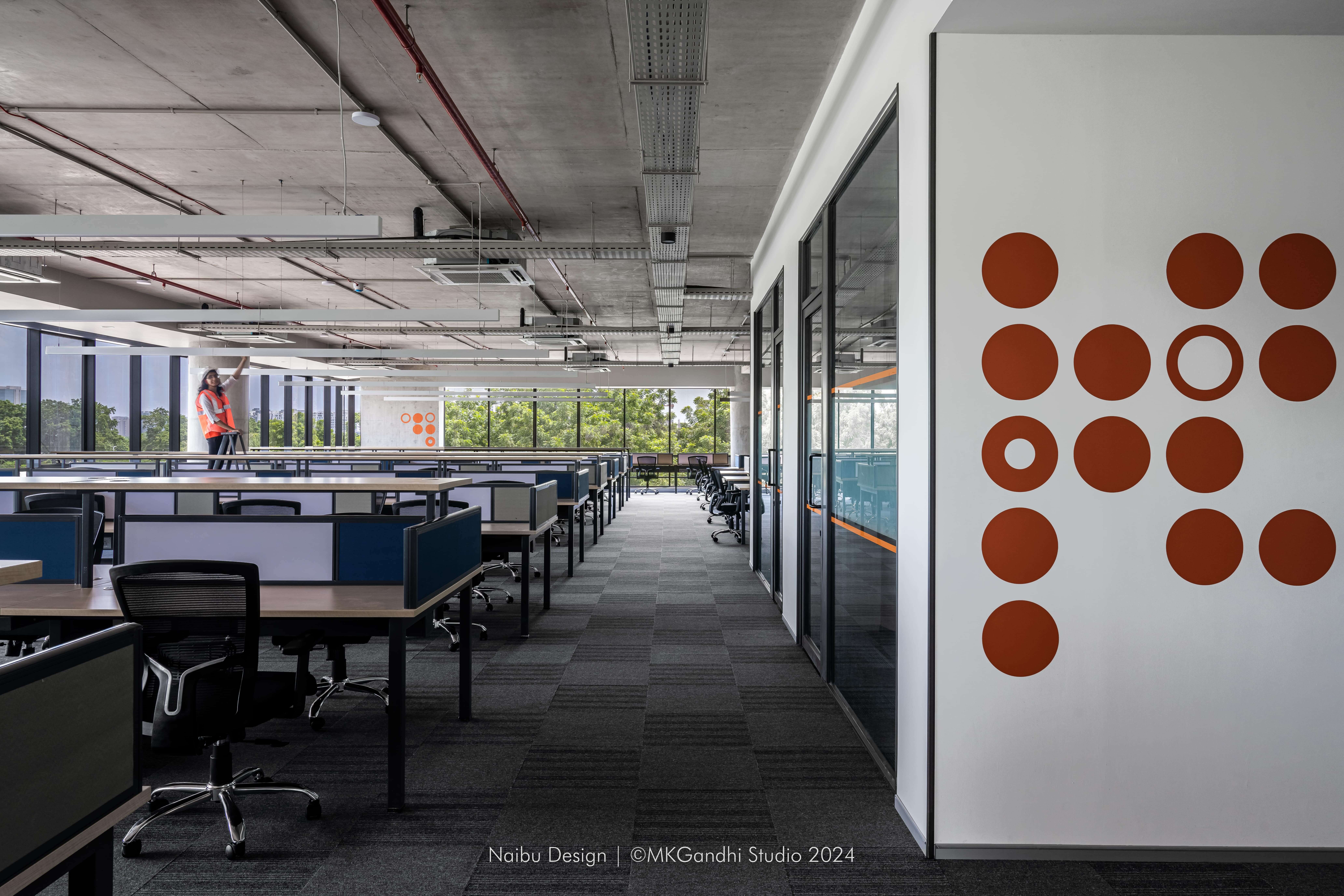 A massive 60,000 sq. ft. workspace designed for Naibu Design, completed in just 60 days. This turnkey project features 700+ ergonomic workstations arranged in a thoughtfully planned layout, complemented by premium interiors, collaborative zones, and executive cabins. The design perfectly balances functionality and sophistication, reflecting Naibu Design’s creative ethos and modern work culture.